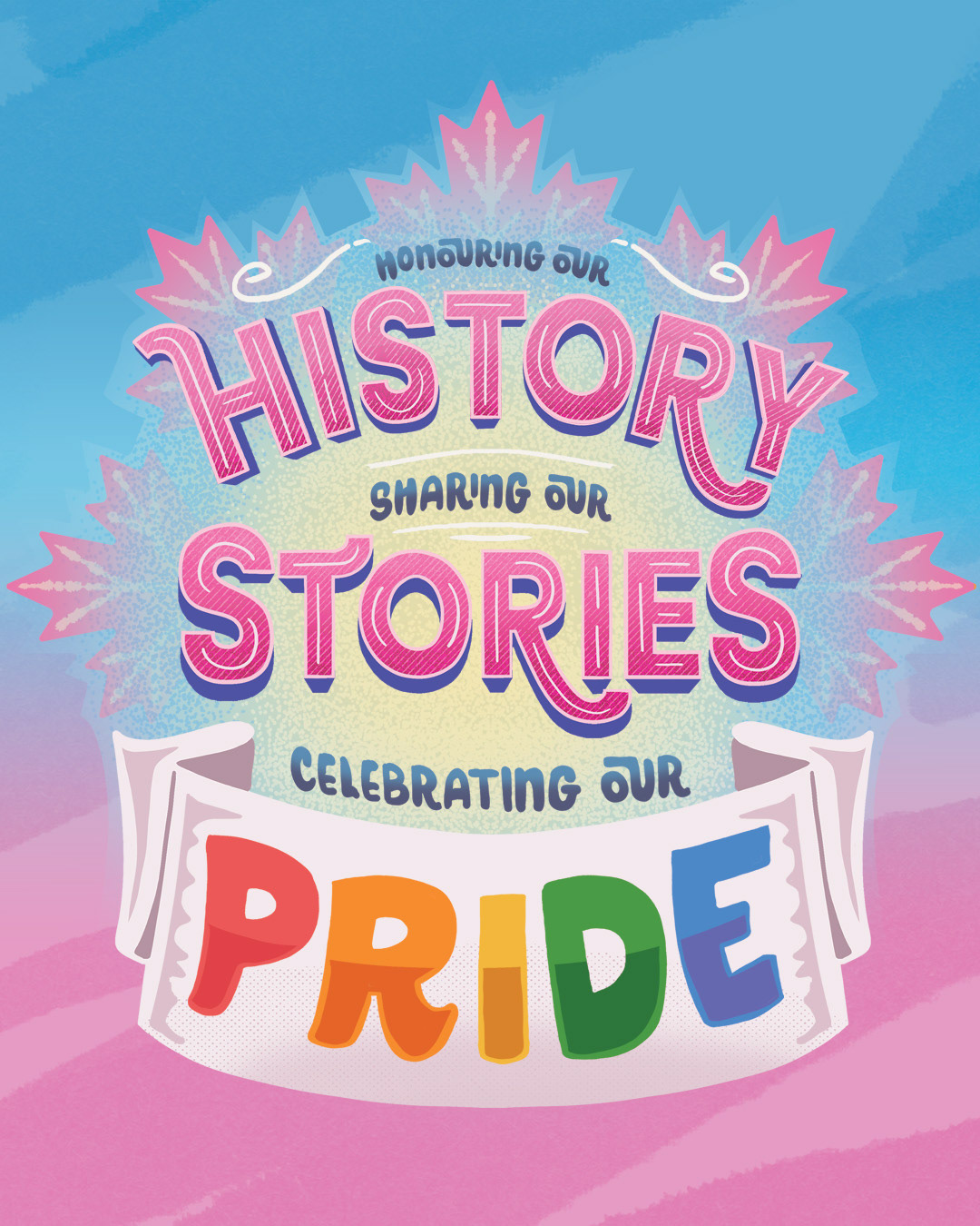 A hand-lettered version of the Canadian Pride Historical Society's tagline, created as part of an upcoming merch launch.